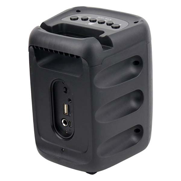 سایر ویژگیها: پشتیبانی از فناوری TWS برای اتصال همزمان دو اسپیکر، کلیدهای فیزیکی برای کنترل موسیقی و نورپردازی، دسته برای حمل